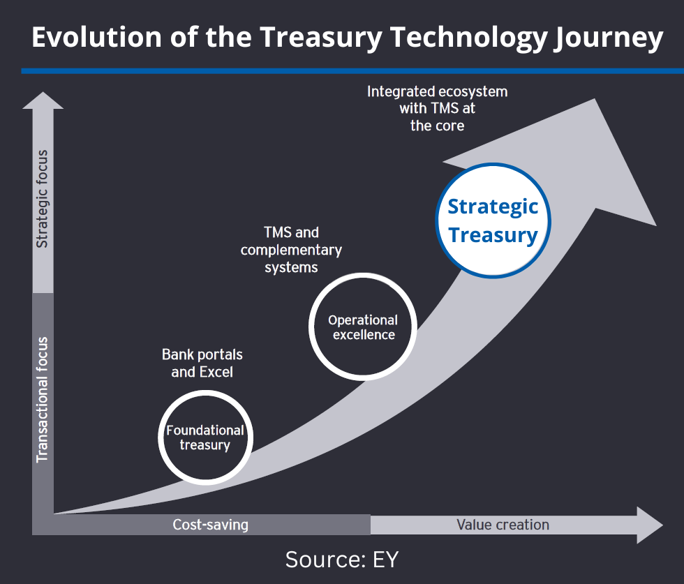 - The EY experts stressed that understanding and navigating these stages is key to transforming treasury into a strategic function that can support the company’s growth initiatives, inform business decisions beyond treasury and optimize global liquidity.
