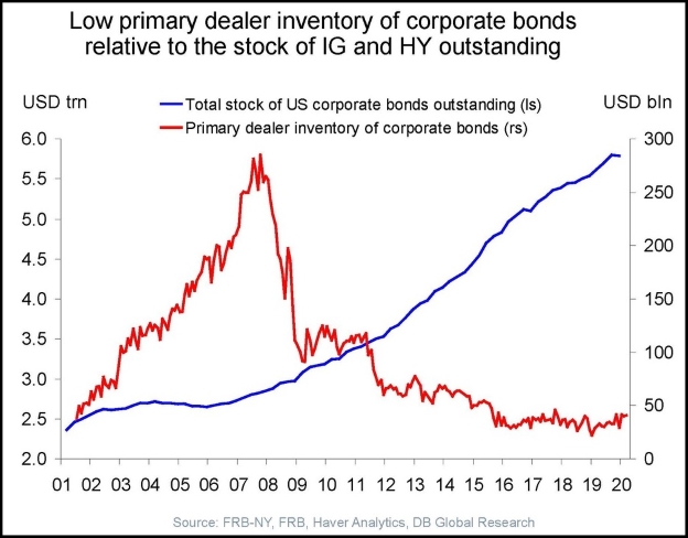 - A key reason for the liquidity problem is that broker dealers, including underwriters, have reduced their inventories of investment-grade corporate debt, in part because of regulations mandating higher bank capital ratios.