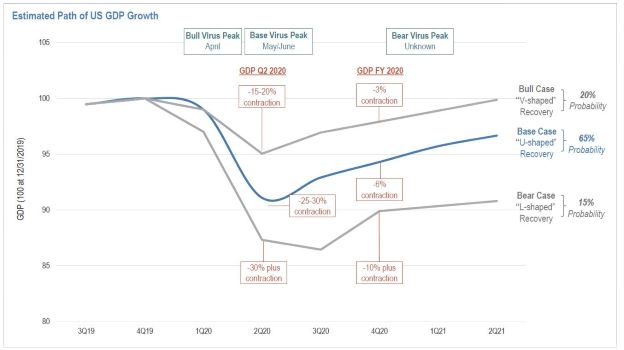 Bull, bear or base case. Neuberger Berman shared with members its investment playbook, which lays out three scenarios for economic recovery: