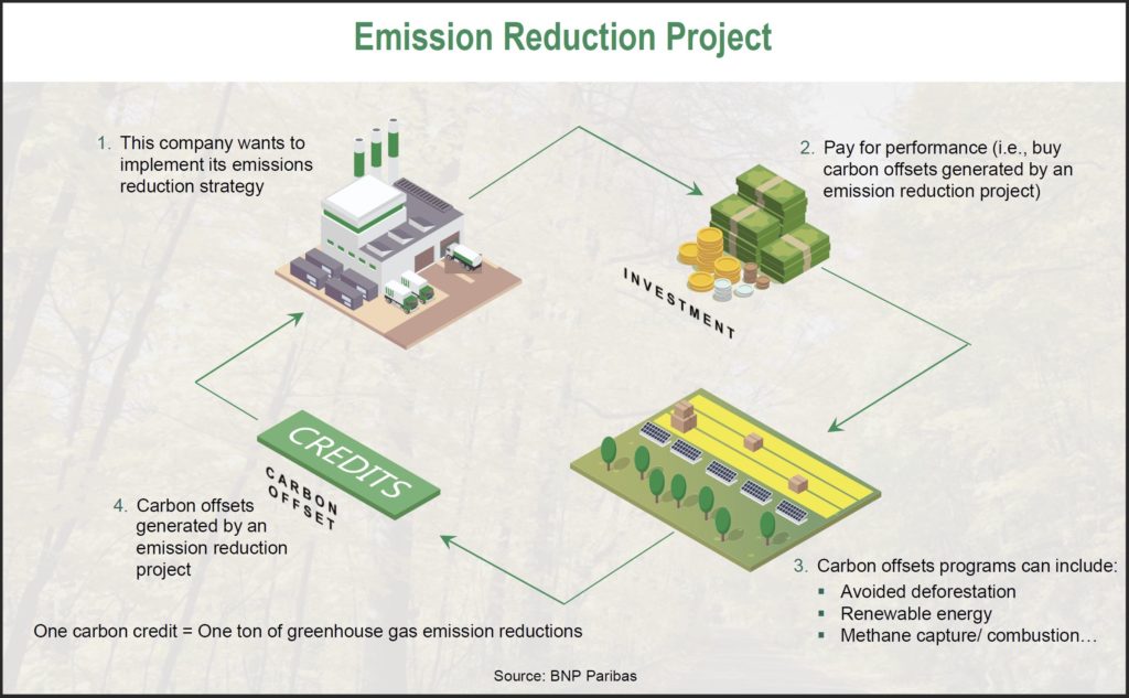 1. BNP Paribas channels money to the emission reduction project developer to operate, perform and generate emissions reductions.