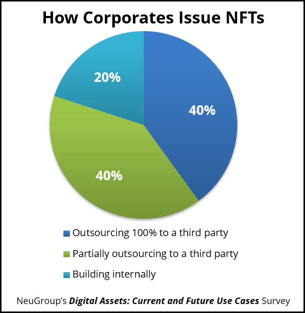 Corporate uses of nonfungible tokens (NFTs) have had a roller-coaster journey over the last two years, with a boom of adoptions in 2021 that plateaued rapidly. But the tokens are far from dead—nearly a third of respondents to NeuGroup’s newest survey, Digital Assets: Current and Future Use Cases, said they’ve already issued NFTs. - NFTs are unique digital assets similar to cryptocurrencies that can be bought and sold, built on a digital ledger known as a blockchain. But these tokens do not store any value, instead serving as a proof of ownership of digital or physical items.