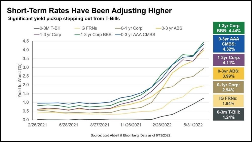 • Lord Abbett investment strategist Joseph Graham, who worked with the university on this investment, said, “Now, yields are up and spreads are wider, and as inflation ravages the purchasing power of cash portfolios, the case for short duration credit is even more compelling,” adding that the firm’s clients “are continuing to find value in our broad-based approach.”