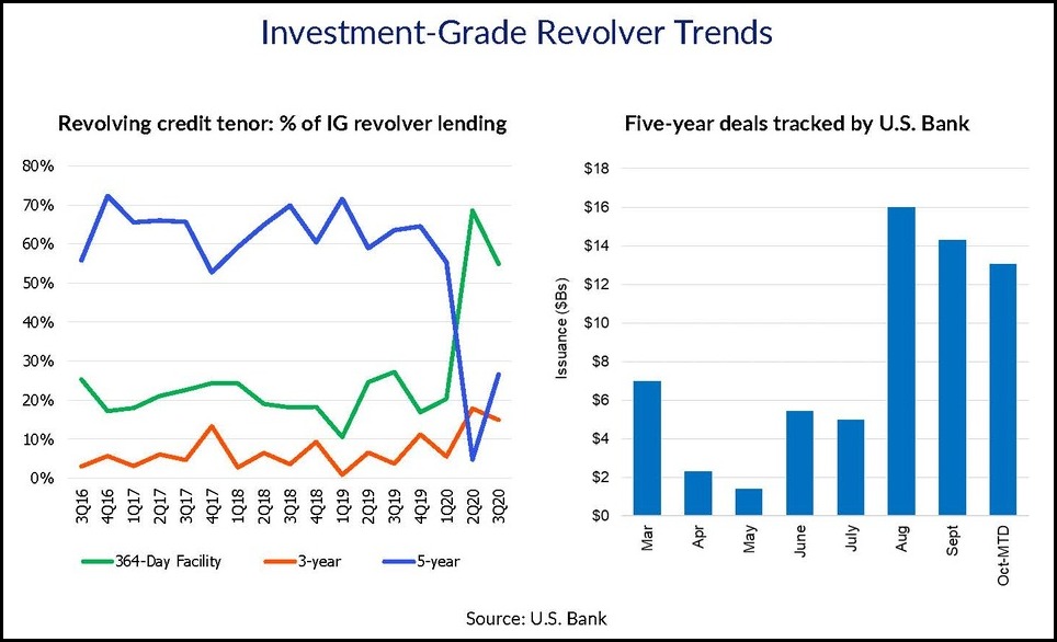 Debt and loan markets are still in repair mode as they were back in April, so it’s time for corporates to talk to their relationship banks about their credit needs, particularly as it relates to revolving credit. That’s according to Jeff Stuart, EVP and head of capital markets at U.S. Bank. Revolver trends. Mr. Stuart, presenting his view of revolvers and more at NeuGroup’s Assistant Treasurers’ Leadership Group second-half meeting, said companies had paid down most of their “Covid crisis drawdowns” of revolving credit lines over the course of the pandemic. Nonetheless, they were keeping those lines of liquidity open just in case.