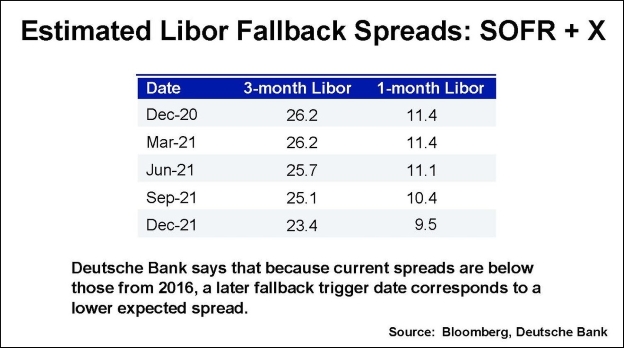- He noted that earlier this year, FCA officials indicated a non-representative announcement could come as early as the end of 2020; the ISDA fallbacks supplement and protocol become effective on Jan. 25, 2021.